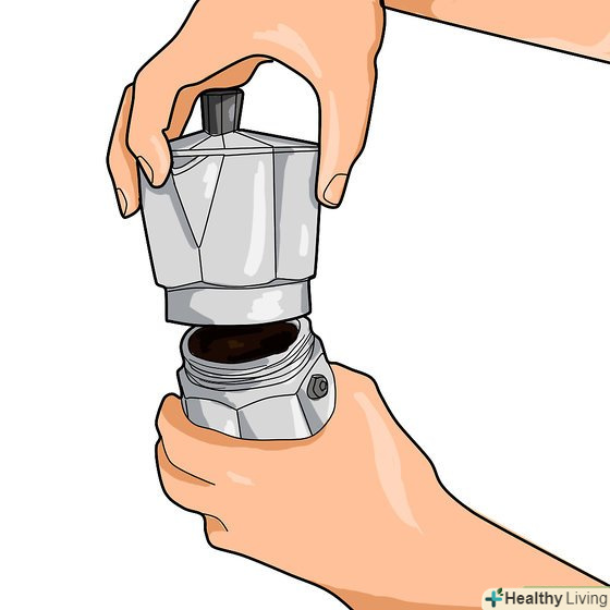 Зніміть кавоварку Мока з вогню, як тільки вся кава досягне верхньої камери.