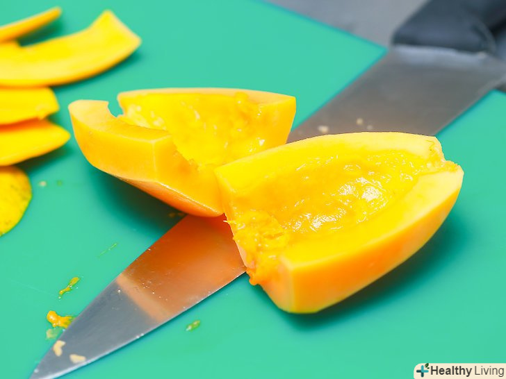 - Дійте обережно і не поріжте, поки будете нарізати папайю. Дійте методично і не поспішайте.