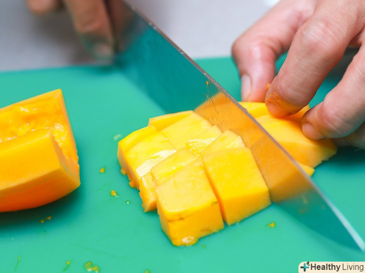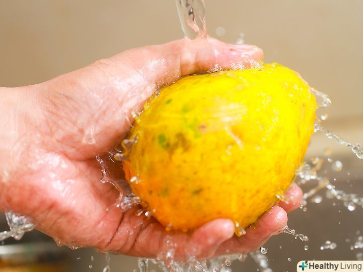 Вимийте фрукт.шкірка плоду не їстівна, але поверхню фрукта необхідно ретельно вимити перед використанням в їжу. Шкірці немитого плоду можуть перебувати бактерії або хімічні речовини, які потраплять на їстівну м'якоть, коли ви будете різати фрукт.