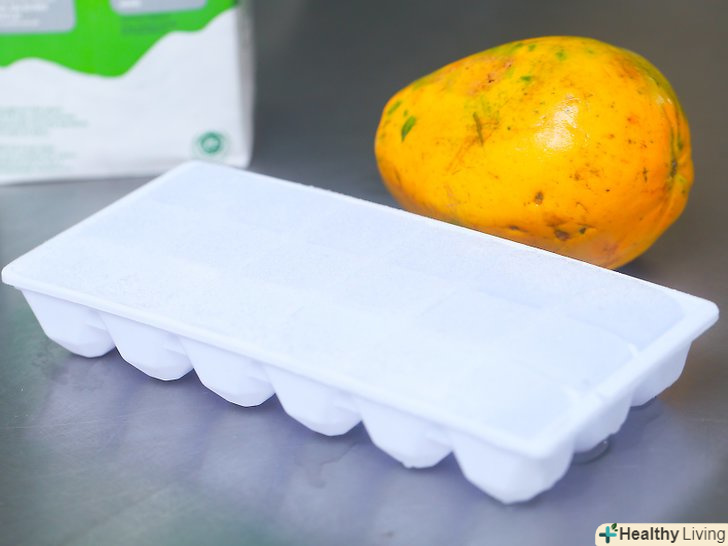 Охолодіть стиглу папайю.незважаючи на те що папайя кімнатної температури цілком придатна до вживання, її смак розкривається набагато краще, якщо подавати фрукт в охолодженому вигляді. Покладіть цілу або розрізану на дві частини папайю в холодильник, щоб підготувати фрукт. Ви можете заморозити папайю, щоб охолодити швидше, але в такому випадку вам доведеться її попередньо розморожувати перед використанням. Дістаньте папайю з холодильника, коли будете готові зробити коктейль.
