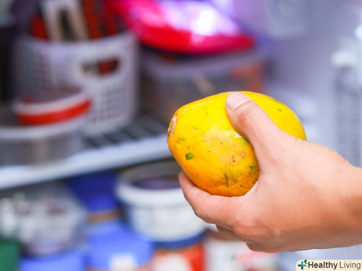 - Злегка стисніть плід папайї. Шкіра стиглого фрукта трохи продавиться. Незріла папайя дуже тверда на дотик. У перезрілого плоду шкірка зморщена, а сам він на дотик здається в'язким.