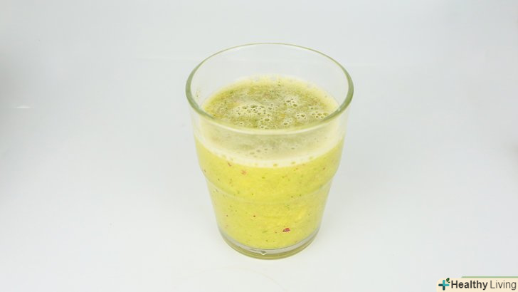 Пийте і насолоджуйтеся корисним коктейлем.цей коктейль містить 17 грамів білка, 12 грамів клітковини. Він багатий вітамінами C і A, залізом і кальцієм. Даний рецепт розрахований приблизно на 3 склянки коктейлю, тому пийте його з великої склянки або розділіть на кілька перекусів.[2]