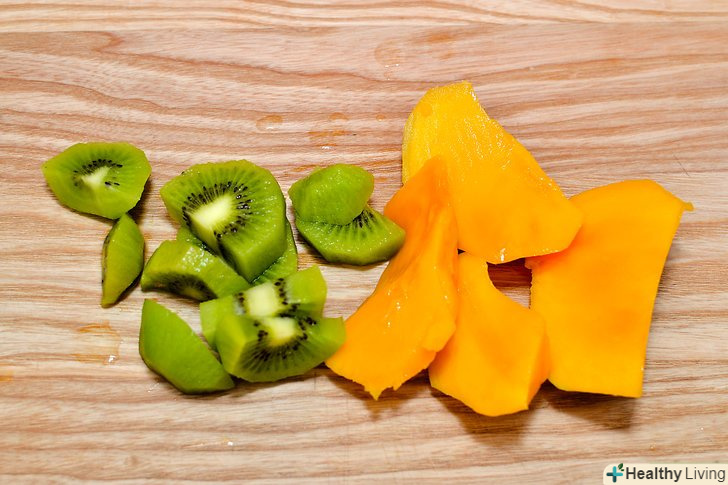 Візьміть тропічні фрукти.цей смузі в стилі коктейлю "Піна колада" - неймовірно смачне літнє задоволення. Вам знадобиться повна чаша улюблених тропічних фруктів. Купіть їх замороженими або свіжими, потім поріжте їх на шматочки приблизно по півтора сантиметра. Можна взяти такі фрукти, як:- Ананас;