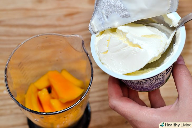 Вирішіть, який тип йогурту використовувати.вам потрібна склянка звичайного, ванільного або фруктового йогурту, залежно від ваших уподобань. Чим більш жирний йогурт ви виберете, тим густішим і багатим буде смак у смузі.