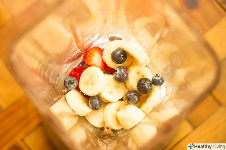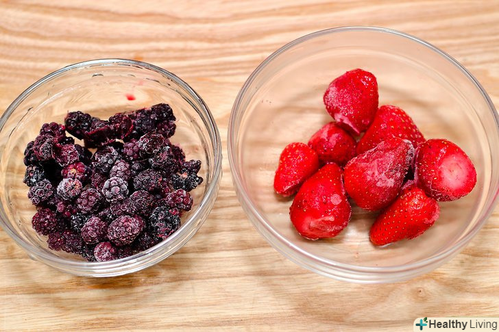 Підготуйте ягоди.для цього смузі необхідний 1 стакан ягід. Ви можете використовувати будь-яку комбінацію чорниці, малини, ожини, полуниці і будь-яких інших видів ягід за вашим вибором. Переберіть ягоди і приберіть всі пом'яті або м'які. Вимийте ягоди і відріжте їм хвостики або живці.[2]- Можете використовувати заморожені ягоди замість свіжих.