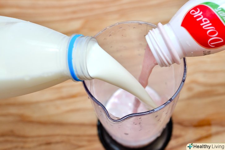 Додайте йогурт і молоко. Ягідний смузі зазвичай буває густим і пюреподібних. Якщо ви хочете, щоб його можна було пити, змішайте йогурт з молоком, а не використовуйте тільки йогурт. Змішайте 1/2 склянки йогурту і 1/2 склянки цільного або знежиреного молока. Пам'ятайте, що чим вище відсоток жирності у молока і йогурту, тим густіше буде смузі.
