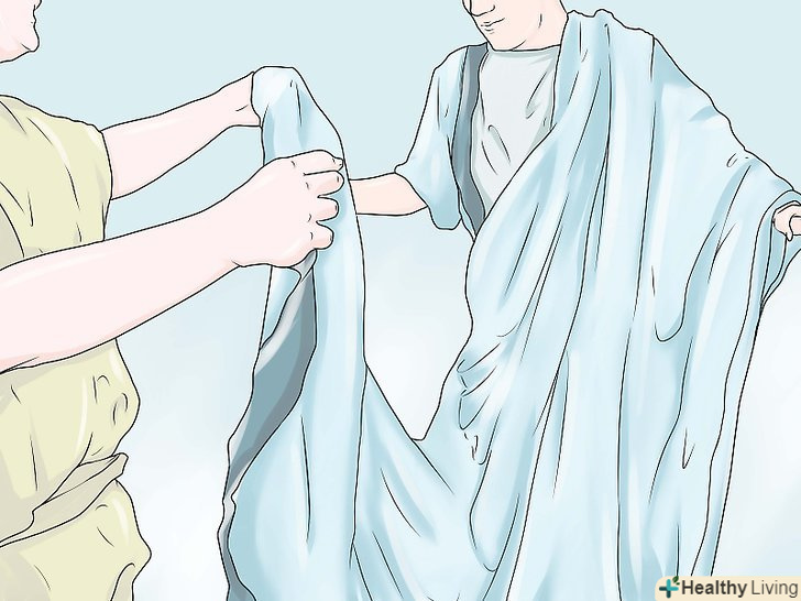 Складіть тогу навпіл.вийде досить довгий, вузький згорток з тканини.