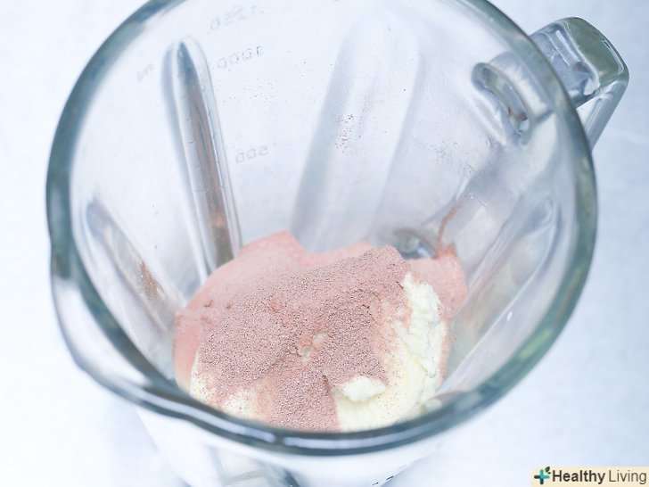 З'єднайте інгредієнти.додайте 2 великих ложки м'якого морозива або замороженого йогурту в блендер або міксер для молочних коктейлів. Використовуйте велику миску з нержавіючої сталі, якщо у вас немає блендера.[3] додайте ¼ склянки (60 мл) молока, щоб приготувати густий коктейль або цілий стакан (240 мл) якщо хочете, щоб напій був рідким. Додайте ½ склянки порошку Несквік.- Незбиране молоко додасть смаку коктейлю насиченості, в той час як знежирене молоко і молоко з низьким вмістом жиру є більш корисним для здоров'я.