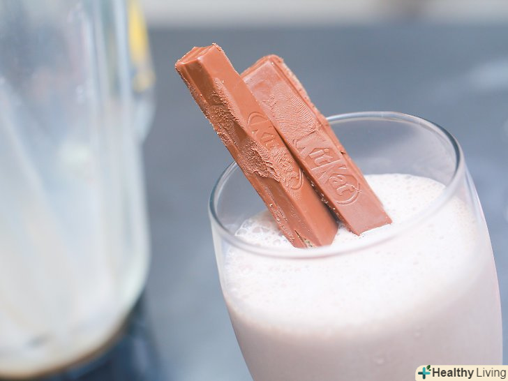 Додайте незвичайні солодощі.виділіть час для експериментів з твердими солодощами. Для найкращого результату додавайте їх вже після того, як збили коктейль. Розкладіть солодощі на вершині коктейлю і залиште там на кілька секунд, щоб змішати без шкоди для текстури напою. Ось кілька ідей:- Роздушіть шоколадне печиво або невеликі тістечка на великі шматки.