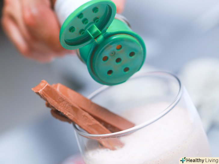- Щоб приготувати шоколадно-арахісовий смузі, додайте 1 столову ложку арахісового масла.[6]