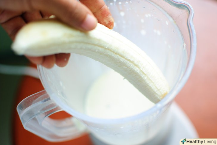 Знову вимкніть блендер, додайте банан і / або полуницю, закрийте кришку і починайте змішувати на середній швидкості.