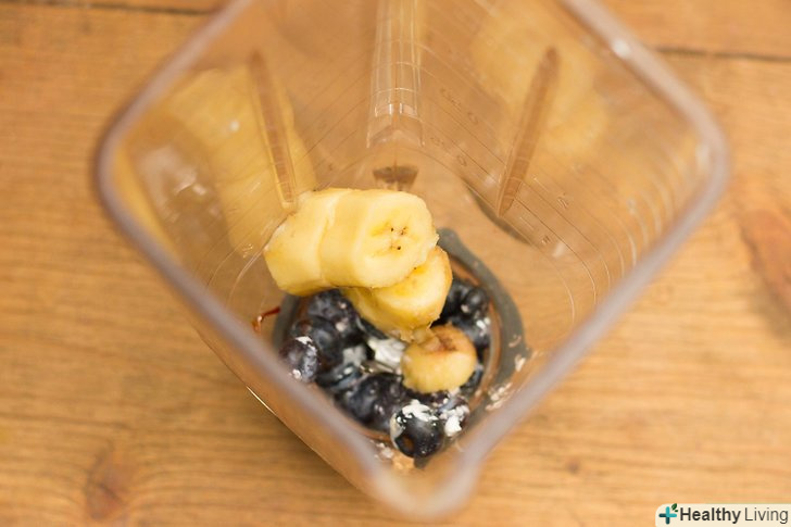 Покладіть в блендер жменю чорниці і половину банана.