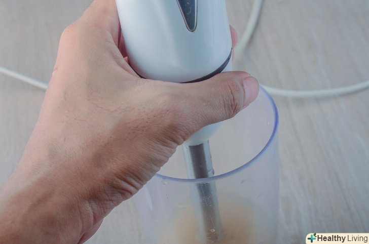Змішайте інгредієнти, щоб отримати однорідну основу.спочатку змішуйте на низькій швидкості протягом 10 секунд, потім на середній і помірно низькій швидкості ще 10 секунд. Завершіть змішуванням протягом 40 секунд на середній і помірно високій швидкості. Так ви отримаєте однорідну основу для коктейлю.[6]