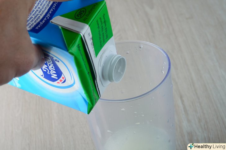 Залийте молоко в блендер.ви можете використовувати будь-який вид молока, включаючи знежирене, незбиране, мигдальне або соєве. Однак з цільного молока або молока 2 % жирності виходить найсмачніший молочний коктейль.[3]- Якщо у вас є тільки знежирене молоко, але вам хочеться більш насиченого смаку, додайте трохи напівжирних або жирних вершків.