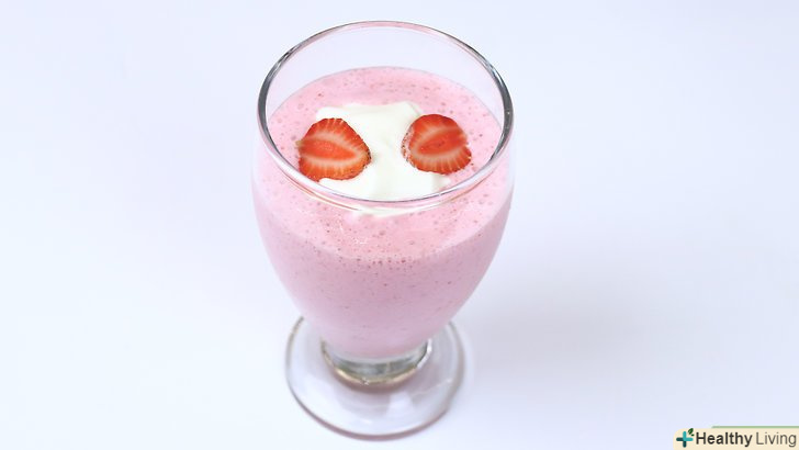- Покладіть в блендер всі інгредієнти. щоб приготувати цей полунично-банановий молочний коктейль, покладіть в блендер 1 дуже стиглий банан, 4 великі полуниці, 3/4 склянки ванільного морозива, 1/2 склянки молока, 1/2 ч.л. екстракту ванілі і збиті вершки.[2]