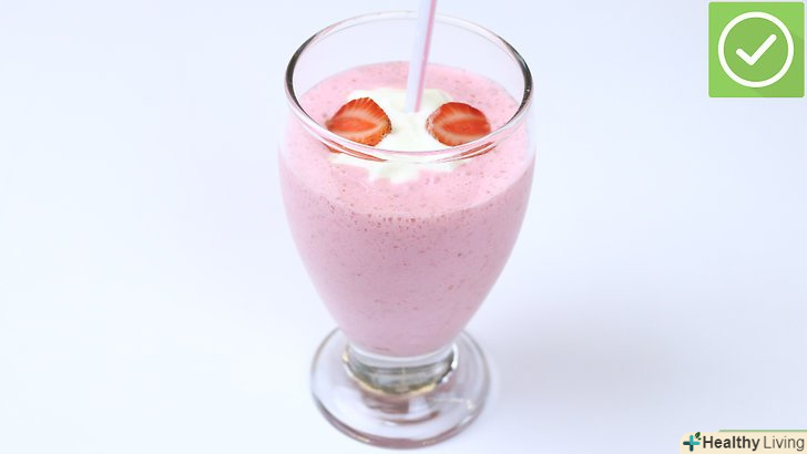 - Розлийте коктейль в дві склянки.цей рецепт розрахований на дві склянки полуничного молочного коктейлю. Налийте коктейль в склянки і покладіть соломинки.