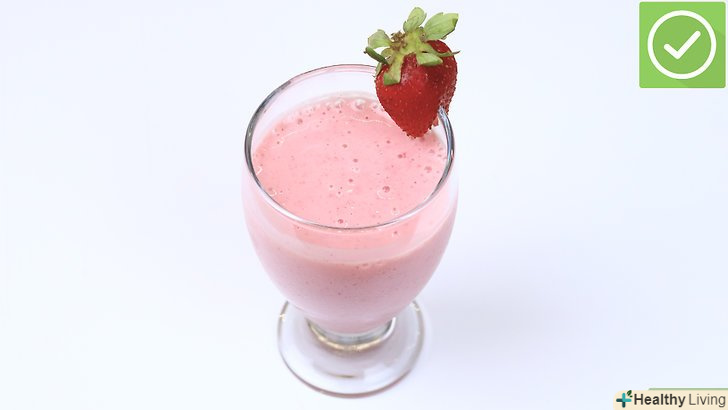 Прикрасьте.прикрасьте молочний коктейль однією або двома ягодами нарізаної полуниці.