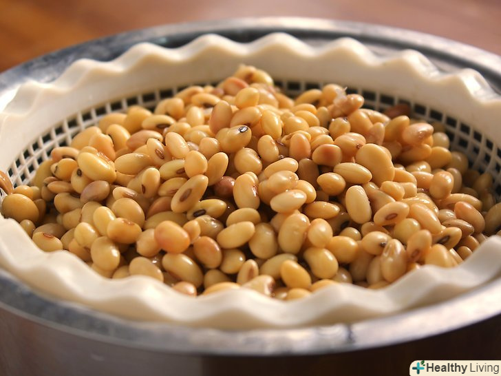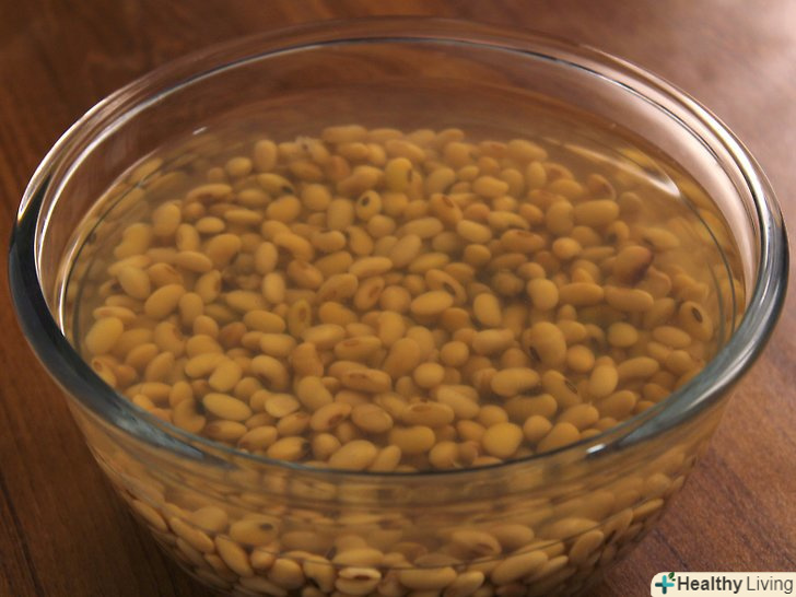 Покладіть соєву квасолю в каструлю і залийте окропом.