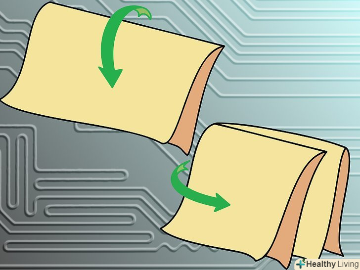 Складіть тканину навпіл в ширину.багато тканини продаються вже складеними по ширині. Складіть ще раз, на цей раз в довжину. Тепер тканина складена вчетверо. Гарненько розгладьте її і переконайтеся, що всі кути збігаються.