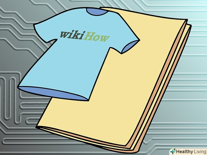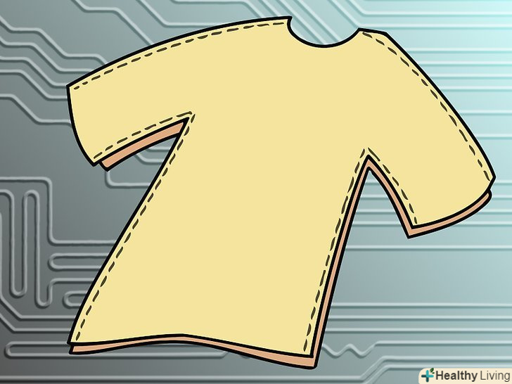 Приготуйтеся перенести викрійку на тканину.щоб створити викрійку, візьміть вільну футболку. Не беріть облягаючу футболку, інакше не зможете носити туніку. Складіть футболку навпіл в довжину і покладіть її на кут тканини, щоб лінії згину тканини і футболки збіглися. Верх футболки повинен бути там, де у тканини подвійний згин.