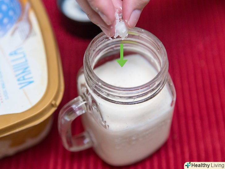 Додайте в блендер морозиво.візьміть 3-4 ложки морозива і додайте в блендер.- Чим більше морозива ви використовуєте, тим більше вийде обсяг коктейлю.