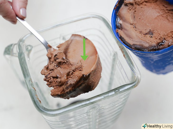 Перекладіть в блендер або кухонний комбайн вміст великої пачки шоколадного морозива (350 г).якщо морозиво занадто тверде для того, щоб його можна було спокійно перекладати ложкою, то його буде важко збити. Спочатку дайте йому трохи відтанути і розм'якшити.