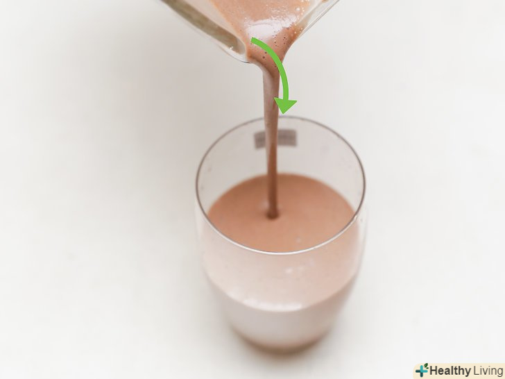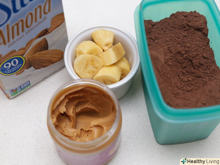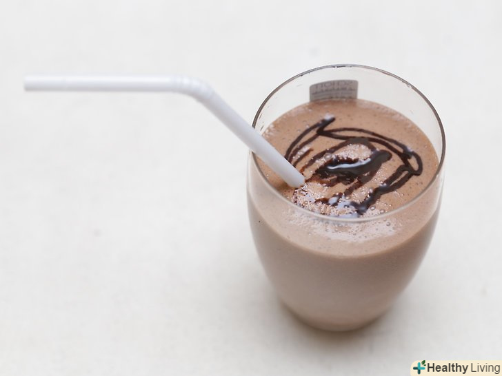 Спробуйте приготувати арахісо-шоколадно-банановий смузі в якості додаткового джерела білка.вам буде потрібно взяти 4 заморожених банана, нарізаних шматочками, 2 столові ложки (30 г) арахісового масла 2 столові ложки (30 г) непідсолодженого какао-порошку і 1½ склянки (350 мл) ванільного мигдального молока. Змішайте всі інгредієнти в блендері до однорідної консистенції, розлийте напій у високі склянки і подайте до столу.[10]- Інгредієнти розраховані на 3 порції.