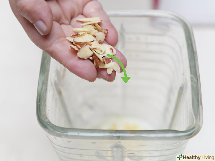 - Для посилення мигдалевого смаку також можна додати 2-3 столові ложки (30-45 г) мигдального спреду. Якщо ви хочете отримати не дуже солодкий смузі, використовуйте солоний мигдальний спред.[5]
