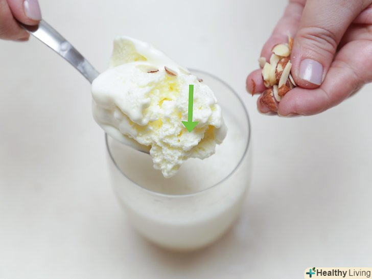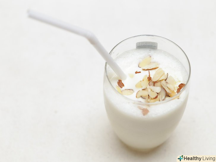 Спробуйте приготувати коктейль з мигдального молока на основі йогурту, якщо вам можна вживати класичні молочні продукти.додайте в блендер два заморожених банана, нарізаних шматочками, ¼ склянки (60 мл) мигдального молока, ¼ склянки (65 г) йогурту і 1 чайну ложку (5 мл) екстракту ванілі. Змішайте все до однорідної консистенції і негайно подайте до столу.[11]- Інгредієнти розраховані на одну велику або дві маленькі порції.