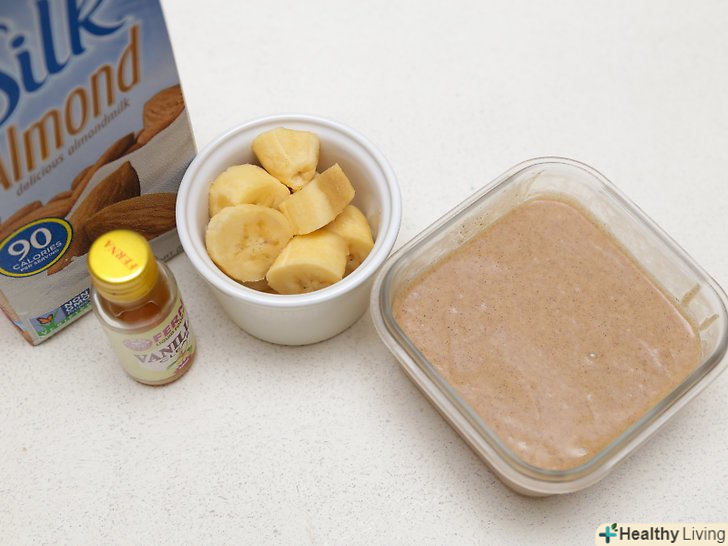 Спробуйте зробити простий бананово-ванільний смузі.додайте в блендер два заморожених банана, нарізаних шматочками, 1 стакан (240 мл) непідсолодженого ванільного мигдального молока, 1 чайну ложку (5 мл) ванільного екстракту, 1 столову ложку (15 г) мигдальної пасти і 1 чайну ложку (5 г) насіння Чіа. Змішайте інгредієнти до однорідної консистенції і швидко подайте до столу у високих склянках.[9]- Інгредієнти розраховані на 2 порції.