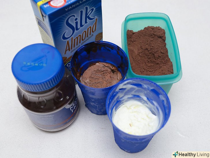 При бажанні використовуйте смакові добавки.для посилення мигдалевого смаку можна додати в коктейль екстракт мигдалю або ж використовувати спеції, що застосовуються у випічці. Непоганим варіантом смакових добавок можуть стати кориця і мускатний горіх!- Щоб надати коктейлю шоколадний присмак, додайте в нього 2-3 столові ложки (30-45 г) какао-порошку.[3]