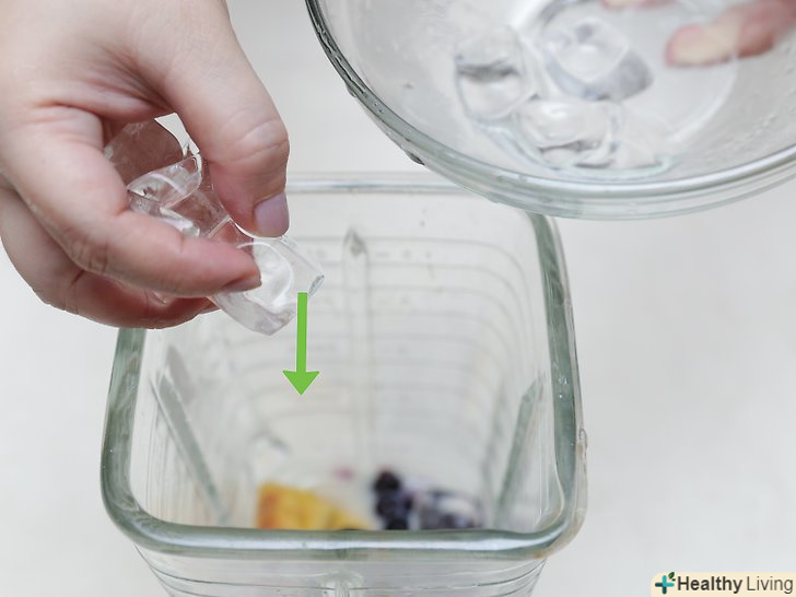 Додайте в блендер 5 великих кубиків льоду. Лід дозволить зробити напій приємно густим. Проте, якщо ви використовували в рецепті заморожені фрукти, можна відмовитися від льоду, якщо тільки ви не хочете зробити дуже густий смузі.