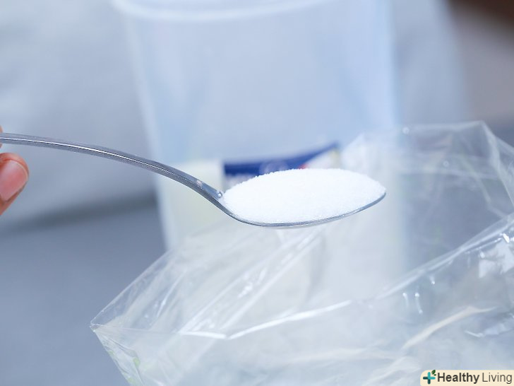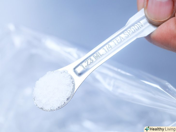 Додайте у великий пакет 1/4 чайної ложки солі.це необхідно для екзотермічної реакції і є обов'язковим кроком, без якого ваша суміш не загусне![3]- Потрясіть пакет протягом 5-7 хвилин, або поки суміш не загусне до консистенції молочного коктейлю.щоб суміш загусла, необхідно трясти її енергійно. Якщо після 7 хвилин ваш коктейль все ще буде недостатньо густим, потрясіть суміш ще кілька хвилин.