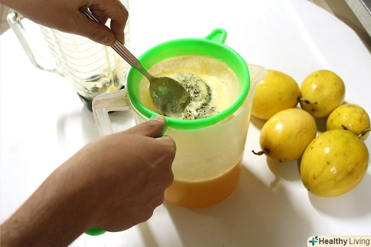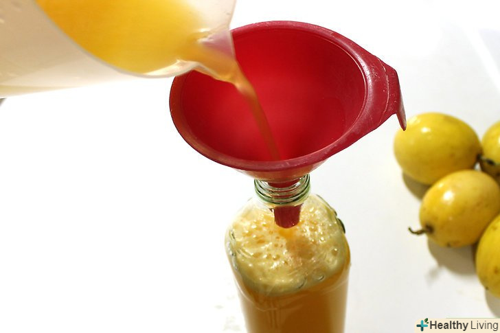 Через воронку влийте сік в глечик або пляшку і остудіть.з 5 маракуйя вийде приблизно 2 ½ літра соку, тому переконайтеся, що ваша пляшка може вмістити стільки.