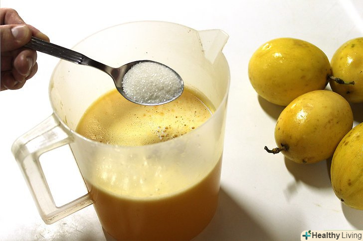 Знову додайте в три рази більше холодної води і додайте цукор за смаком.спробуйте смак за допомогою чайної ложки, поки не отримаєте бажану консистенцію. Вам може все ще знадобитися додати більше води, але робіть це з обережністю, так як вам не потрібно робити сік занадто розведеним.