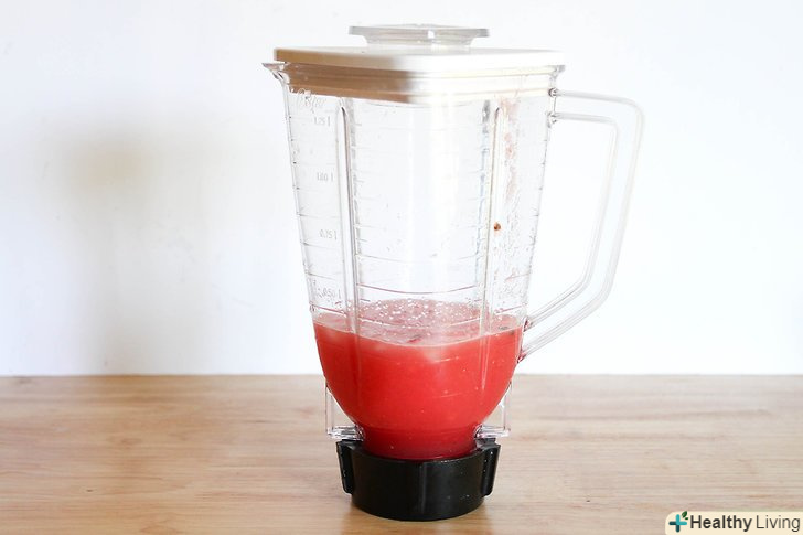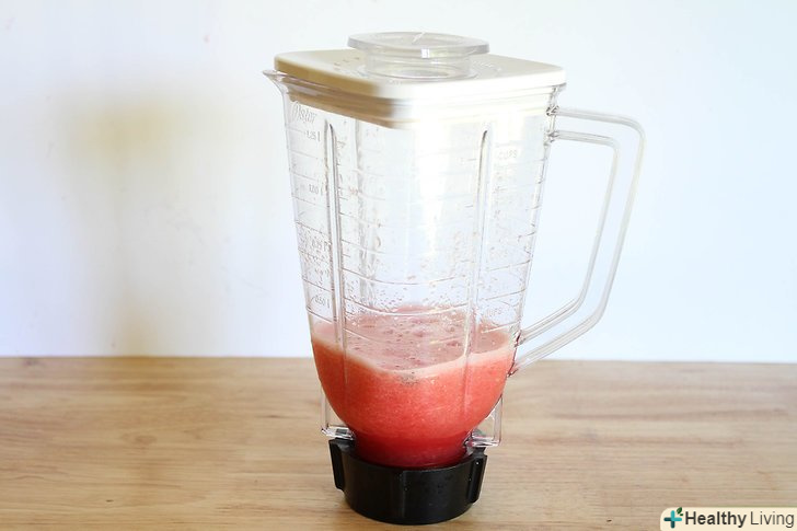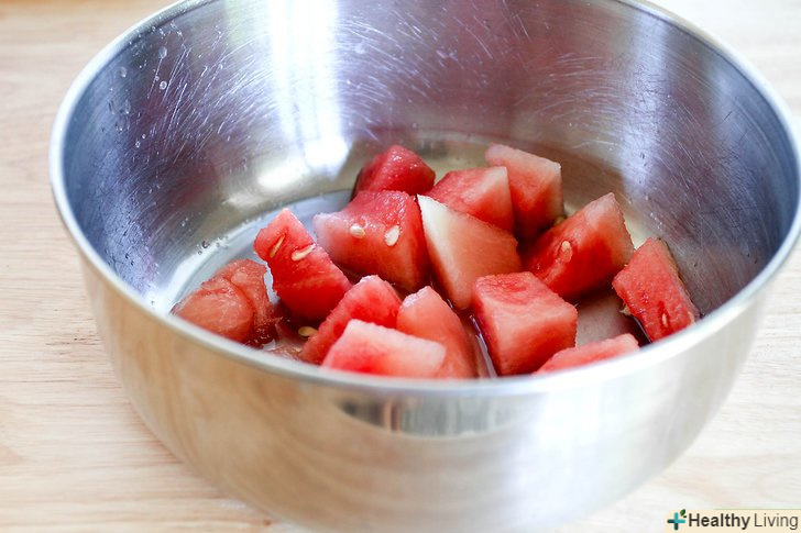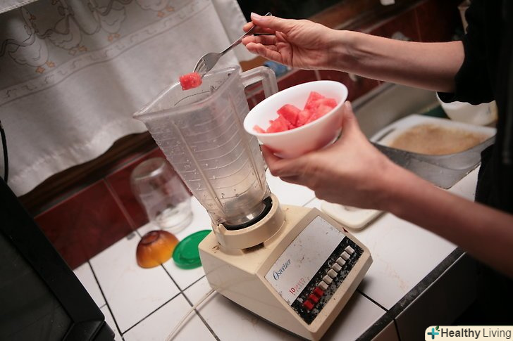 Складайте шматочки кавуна в миску, контейнер або на тарілку.робіть це за допомогою вилки, щоб не допустити безладу.- Покладіть кавун в блендер.додайте цукрову пудру або мед, якщо хочете.