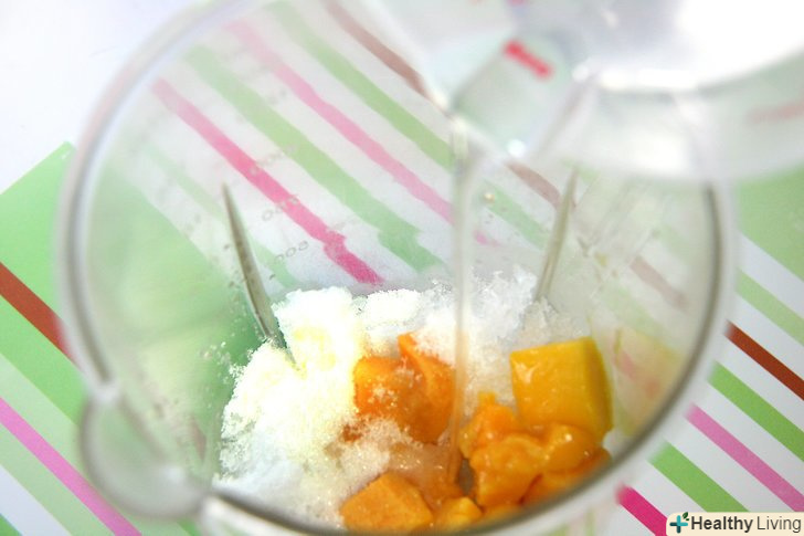 Покладіть їх у блендер разом з колотим льодом, водою і цукром.