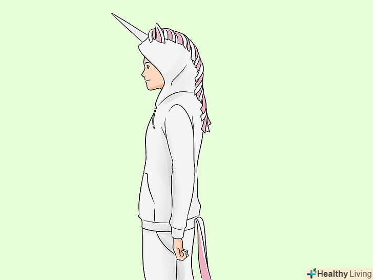 Завершіть костюм. Надіньте і застебніть його. Доповніть костюм відповідними брюками або легінсами, взуттям і рукавичками.- Ви також можете нафарбувати обличчя, щоб виглядати як єдиноріг.