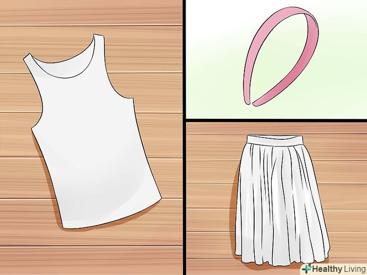 Використовуйте білий або пастельні кольори.одягніть майку з довгими рукавами і легінси або штани. Одягніть одяг білого, рожевого, фіолетового або інших пастельних кольорів. Прикрасьте майку наклейками.
