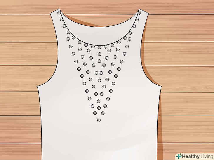 Прикрасьте майку.Приклейте стрази до жилета, уздовж вирізу у вигляді букви V, використовуючи пістолет для склеювання.