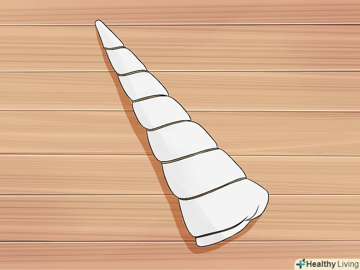 Оберніть Ріг золотою ниткою у вигляді спіралі, щоб він виглядав чарівним.Приклейте один кінець нитки до верхньої частини Рогу і намотайте нитку навколо Рогу до самого її кінця. Приклейте Ріг.- Злегка затягніть золоту нитку так, щоб трошки стиснути Ріг.