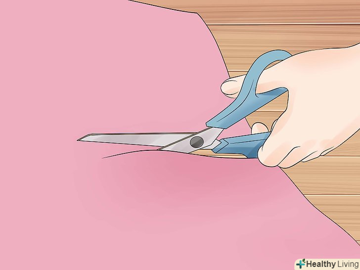 Виріжте вуха.виріжте два набори для нижнього шару вух. Використовуйте білий повсть приблизно 3 см в довжину, складений удвічі. Чи не зрізайте нижній шар і, коли ви розкриєте шари, Ви отримаєте дві однакові форми. Виріжте ще два вуха з рожевого повсті, але одношарових. Вони повинні бути трохи менше білих.[8]