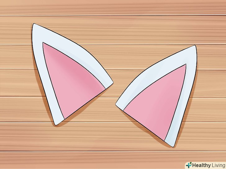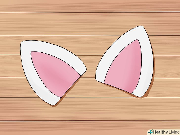 Змайструйте вуха.виріжте два трикутники з повсті одного кольору, наприклад, білого, і два трикутника іншого кольору, наприклад, рожевого. Білі трикутники повинні бути приблизно розміру долоні, а рожеві - менше.- Накладіть рожевий трикутник на білий і зшийте їх по центру. Зробіть те ж саме для решти пари трикутників.