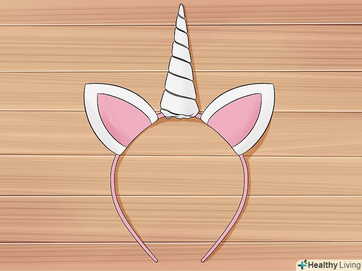 Прикріпіть вуха до пов'язки.прикріпіть білі вуха по обидві сторони Рогу єдинорога. Приклейте Нижні складені частини до пов'язки. Приклейте верхівки вух один до одного. Додайте рожеві вуха до білих.