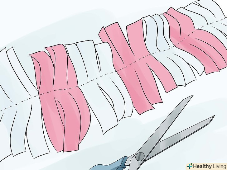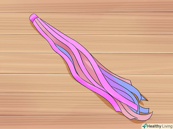 Зробіть хвіст.для цього використовуйте стрічку або нитки пастельних тонів. Виріжте кілька шматків стрічки або ниток так, щоб вони доходили від вашої талії до колін. Зв'яжіть один кінець, прив'яжіть або прикріпіть шпилькою до задньої частини штанів.[10]