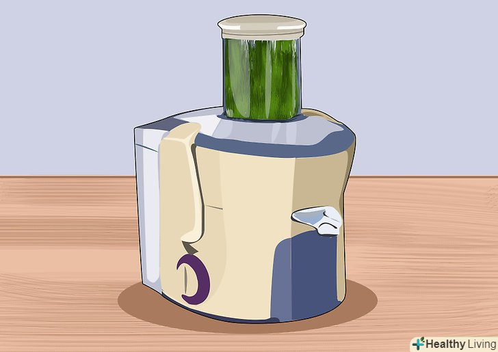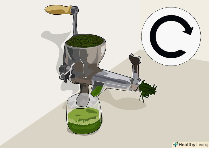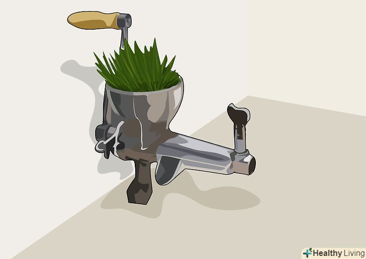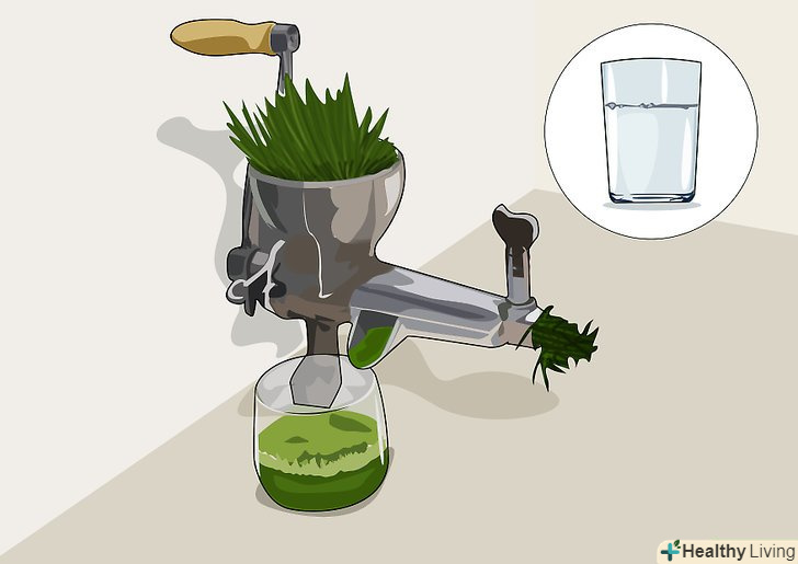 Підготуйте соковижималку.всі соковижималки різні, так що зберіть її відповідно до інструкції. Ручні соковижималки для паростків можуть трохи походити на м'ясорубки: як правило, у них є ручка, яку треба обертати, і схоже на товкач пристосування, яким ви зможете проштовхувати паростки вниз. Ручні соковижималки іноді дійсно підходять тільки для трави, тому, якщо вже ви вирішили купити на соковижималку, варто вибрати електричну, щоб вичавлювати сік і з інших овочів. Електричні соковижималки легше у використанні, але вимагають трохи більшого очищення.[4]- Якщо ви купуєте електричну соковижималку, вона повинна працювати за принципом перетирання. Відцентрова соковижималка взагалі не підійде для отримання соку з пшениці.