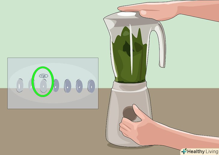 Змішайте паростки і воду разом на найвищій швидкості.змішуйте протягом 60 секунд, цього повинно бути достатньо. У вас повинен вийти смарагдово-зелений сік з шматочками м'якоті, плаваючими на поверхні.[7]- Зверніть увагу, що трава може заплутатися навколо лез блендера, якщо шматочки будуть занадто довгими. У більшості випадків це не проблема, і ви можете просто очистити леза, коли закінчите робити сік. Однак звертайте увагу на можливі ознаки несправності, таких як уповільнення руху леза або звук мотора, що працює із зусиллями. Якщо ви підозрюєте, що трава засмітила блендер, можливо, Вам буде потрібно спочатку витягти її і лише потім продовжити приготування соку.