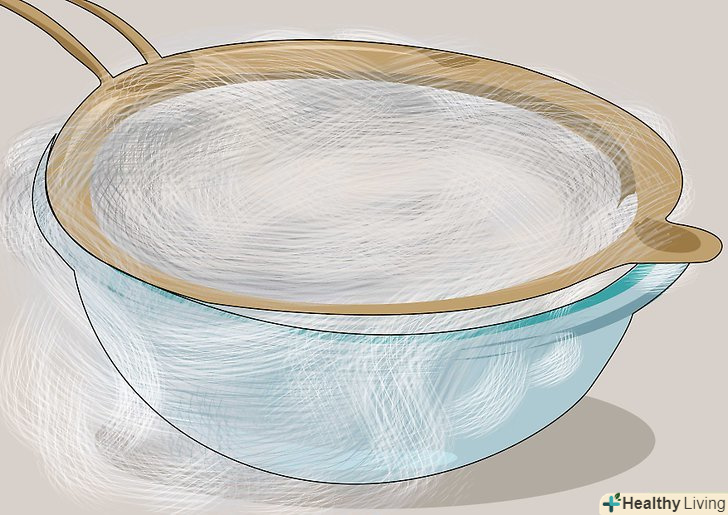 Покладіть сито на чисту скляну миску.рекомендується дрібнопористе сито, і воно повинно бути не більше діаметра миски, над якою ви його розміщуєте.[8]
