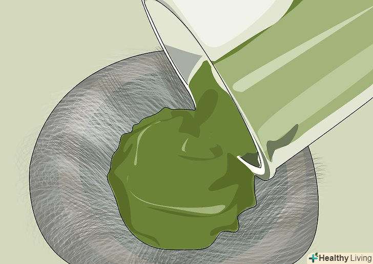 Поверніть грудку зелені в ступку.повторюйте процес подрібнення, поки листя не побіліють, додаючи ще трохи води кожен раз, щоб отримати пасту тієї ж консистенції.[10]