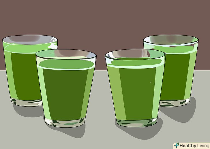 Покладіть 1/2 склянки (115 г) подрібнених паростків в блендер з 2-3 склянками (500-750 мл) фільтрованої води.якщо ви віддаєте перевагу більш сильний, концентрований смак, додайте тільки 2 склянки (500 мл) фільтрованої води. Однак, якщо ви не звикли до смаку зелені або вважаєте його занадто сильним, розбавте сік більше, використовуючи 3 склянки (750 мл) води. При бажанні можна замінити воду свіжовичавленим апельсиновим соком або соком кокоса. Так у вас вийде напій з більш вираженим смаком.